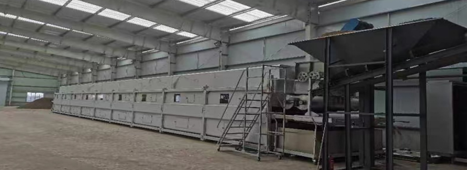 - 进料:经前分离后的沼渣(含水率60-80%),通过布料机喂入烘干机内,并将沼渣在干燥带上均匀铺平。